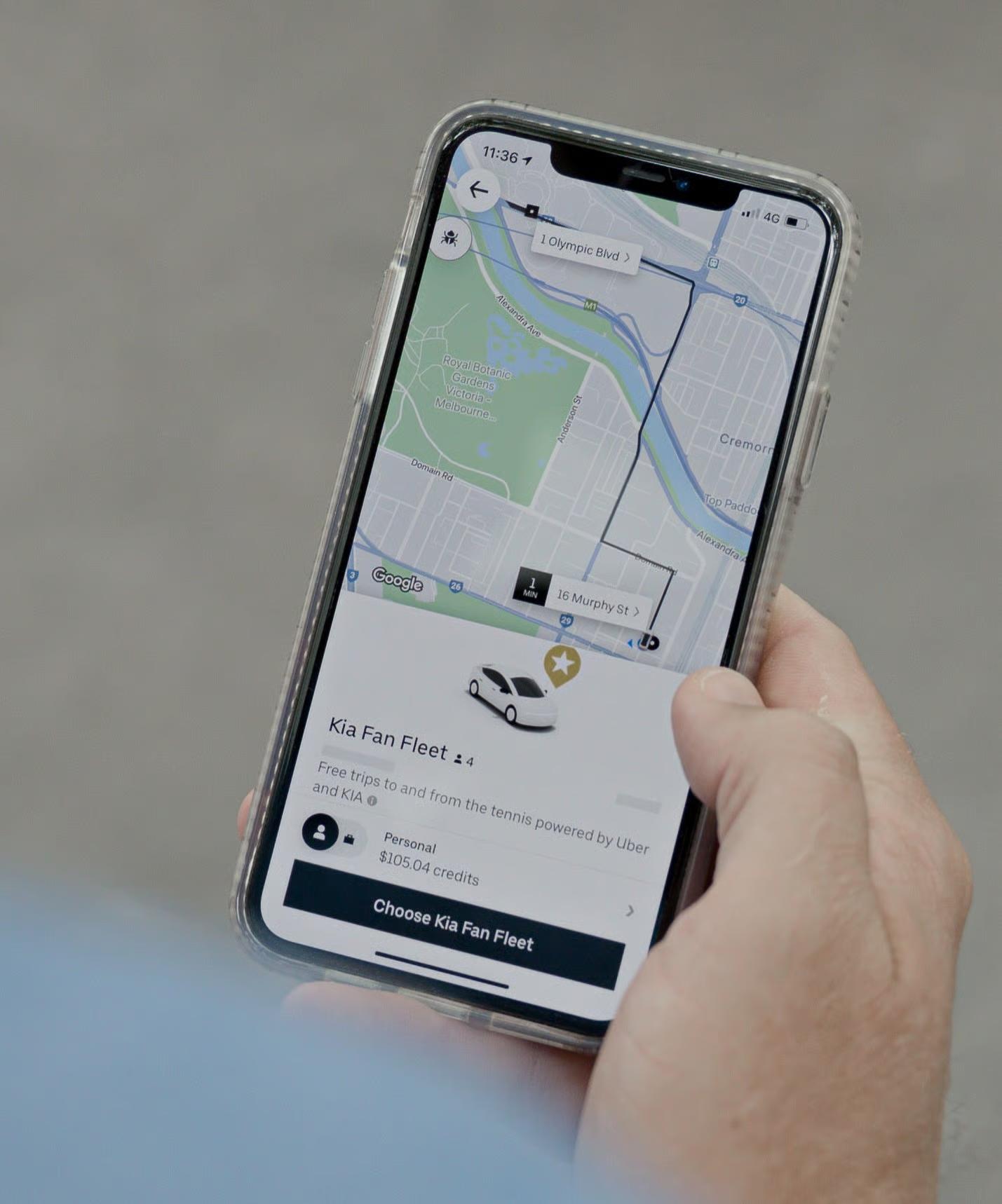 Having your chance to land a complimentary ride to the Australian Open from the CBD or Melbourne Park is easy and starts in the Uber app. If there is a Kia Seltos vehicle available tennis fans can select the “Kia Fan Fleet” icon from the list of ride options. If the time is right and you’re game, you’re set to match up with a Kia Seltos.
