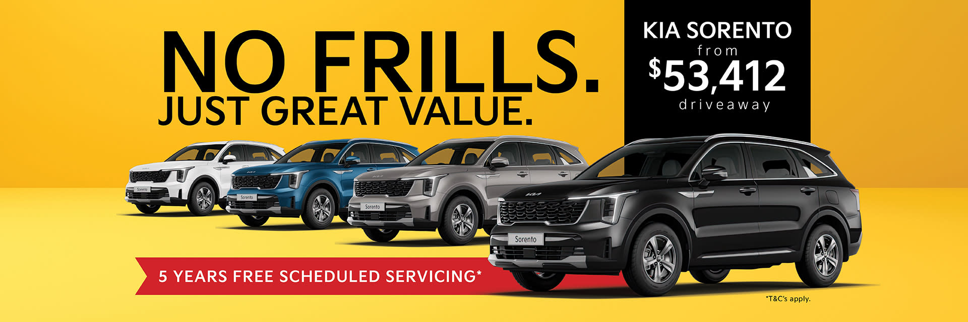 Terms and conditions apply. Offer exclusive to Sunshine Kia. *Available on vehicles purchased and delivered by September 30, 2025. Includes a total of three services over 5 years or to a maximum of 75,000kms, whichever comes first, which must be completed at Sunshine Kia’s Service Centre. Not redeemable for cash and cannot be used in conjunction with any other offer. Sunshine Kia reserves the right to amend or withdraw this offer at any time without notice. Retail buyers only—fleet buyers are excluded. For further information, please contact Sunshine Kia team.