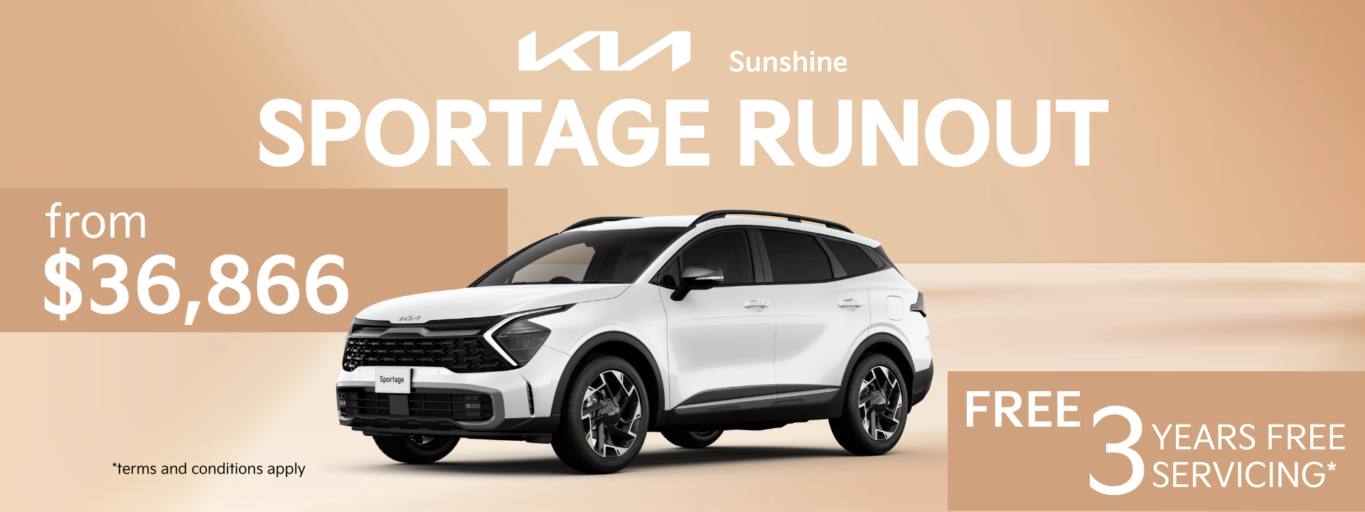 * Exclusive offers at Sunshine Kia. 3 years of free servicing covers a total of three services. This offer is only available for in-stock new and demo Kia vehicles and must be delivered before May 31st. Retail buyers only—fleet buyers are excluded. Offers cannot be combined with any other promotions. Sunshine Kia reserves the right to change or withdraw the offer without prior notice. For full terms and conditions, please contact our Sunshine Kia team.